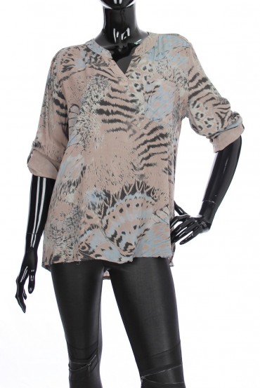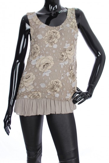 Top ample encolure à boutons empiècement dos et base dentelle.