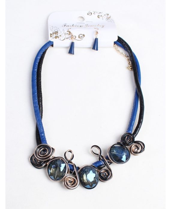 COLLIER + BOUCLES D'OREILLES 160034 BLEU