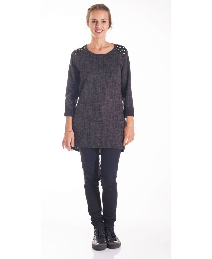 PULL TUNIQUE EPAULES CLOUTEES 4202 NOIR