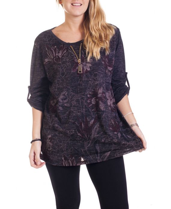 GRANDE TAILLE PULL IMPRIME ZIPPE 4290 NOIR