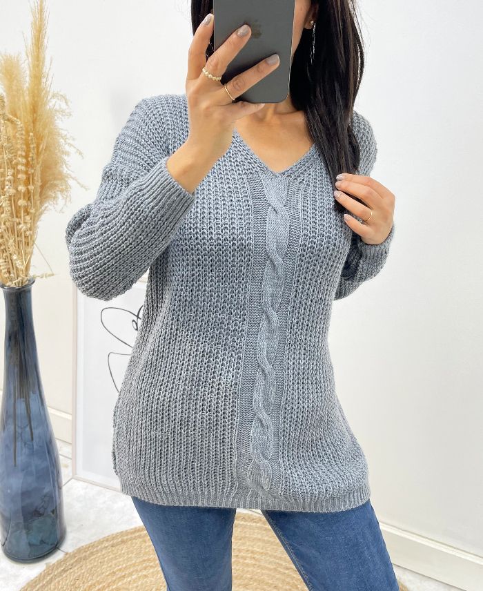 PULLOVER LAINE COL V TORSADE AH192 GRIS