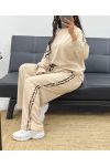 ENSEMBLE SWEAT + PANTALON EVASE RAYURES LEOPARD AH250352 BEIGE