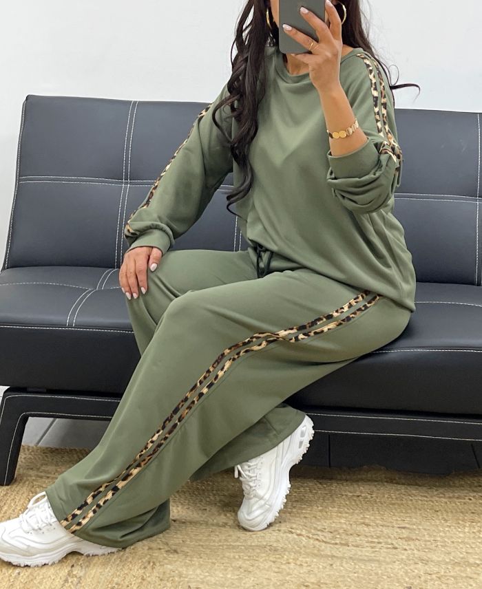 ENSEMBLE SWEAT + PANTALON EVASE RAYURES LEOPARD AH250352 KAKI