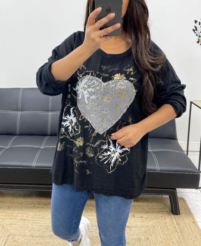 TOP BI-MATIERE COEUR PAILLETTES AH250805 NOIR