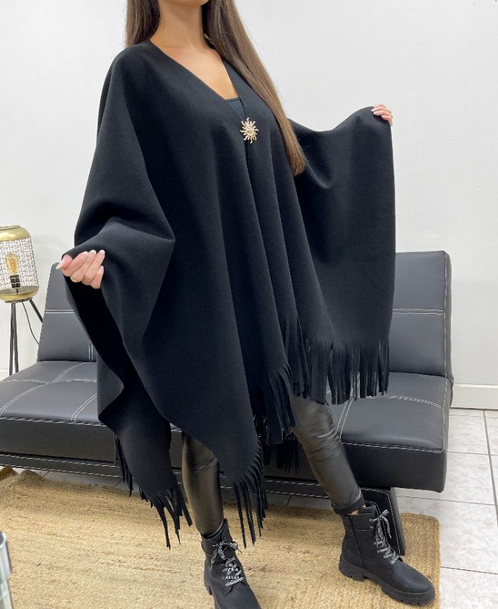 GRANDE TAILLE CAPE A FRANGES ACCESSOIRE AH36322 NOIR