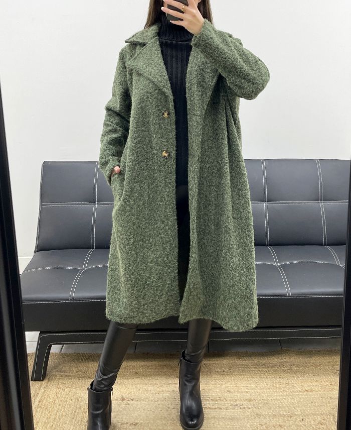 MANTEAU LONG OVERSIZE 2 POCHES A POILS DOUX AH36368 VERT