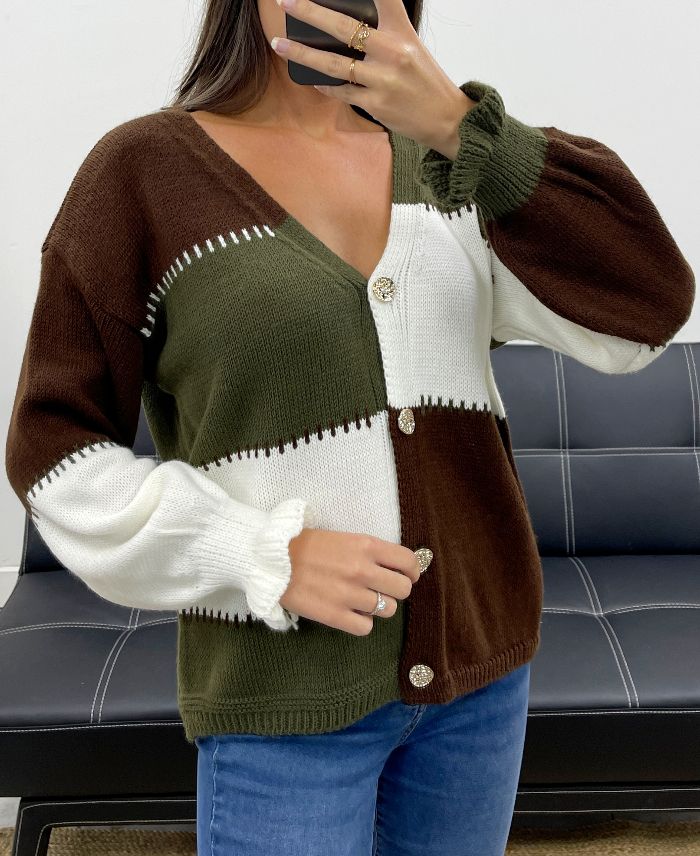 GILET CHIC MAILLE MULTICOLOR AH5162 KAKI