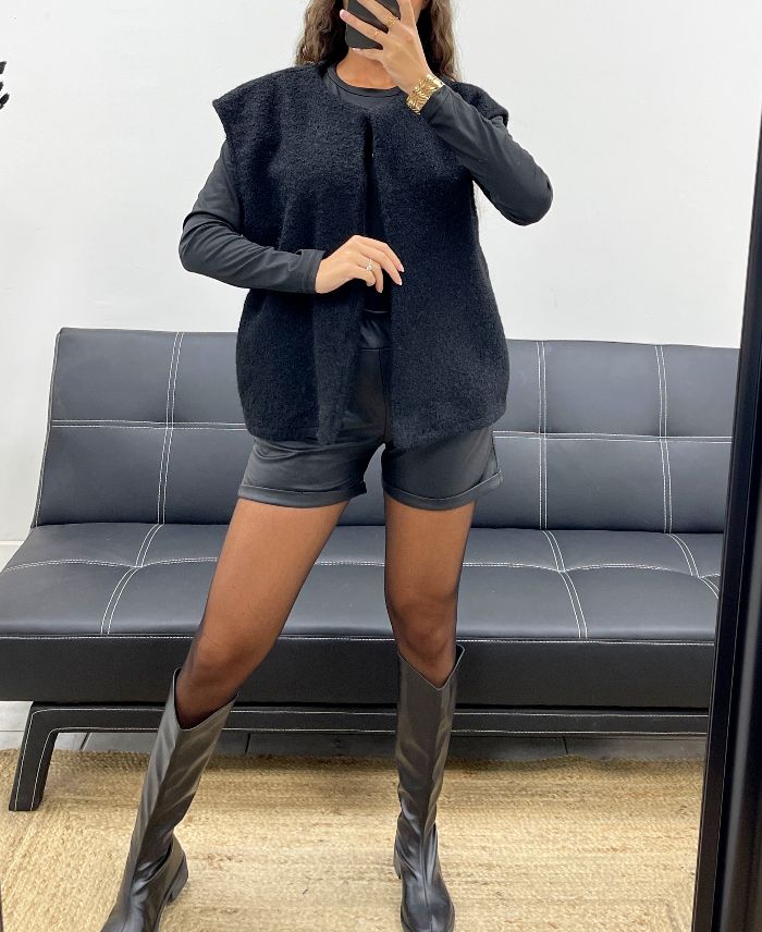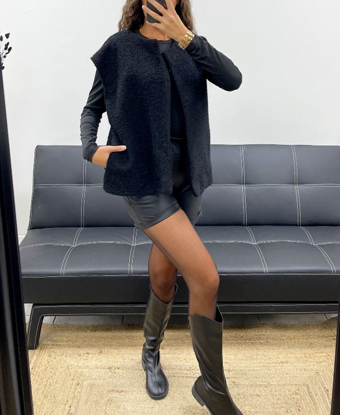 VESTE EN LAINE A POILS DOUX 2 POCHES AH555019 NOIR