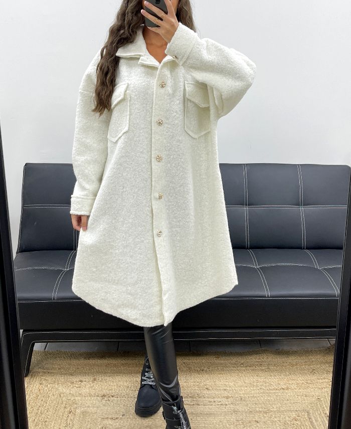 SUR-CHEMISE LONGUE EFFET LAINE BOUCLéE AH2555031 BLANC