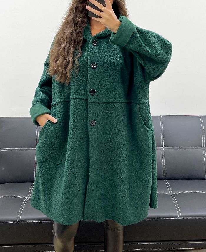 GRANDE TAILLE MANTEAU A BOUTONS 2 POCHES AH255074 VERT