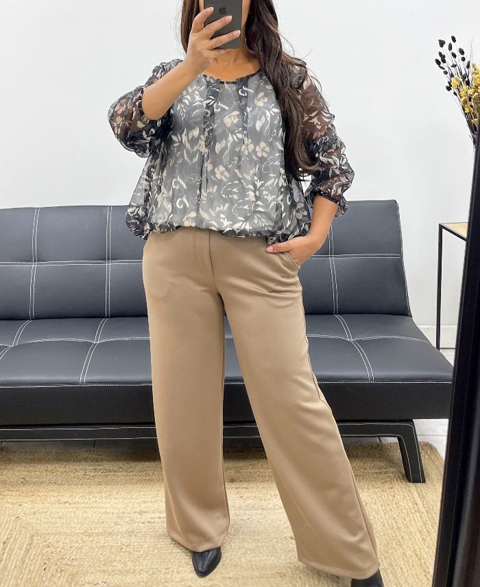 BLOUSE VOILAGE EFFET BOULE AH255103 NOIR-1