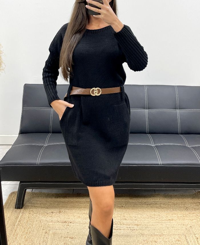 ROBE - PULL MAILLE + CEINTURE AH255213 NOIR