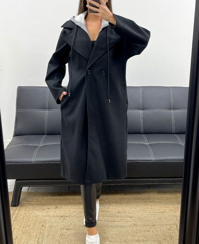 MANTEAU A CAPUCHE EFFET 2 EN 1 AH255247 NOIR