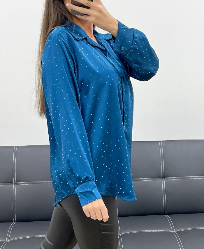 CHEMISE SATIN CLOUTéE AH250621 BLEU