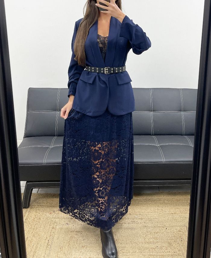JUPE LONGUE DENTELLE AH250679 BLEU MARINE
