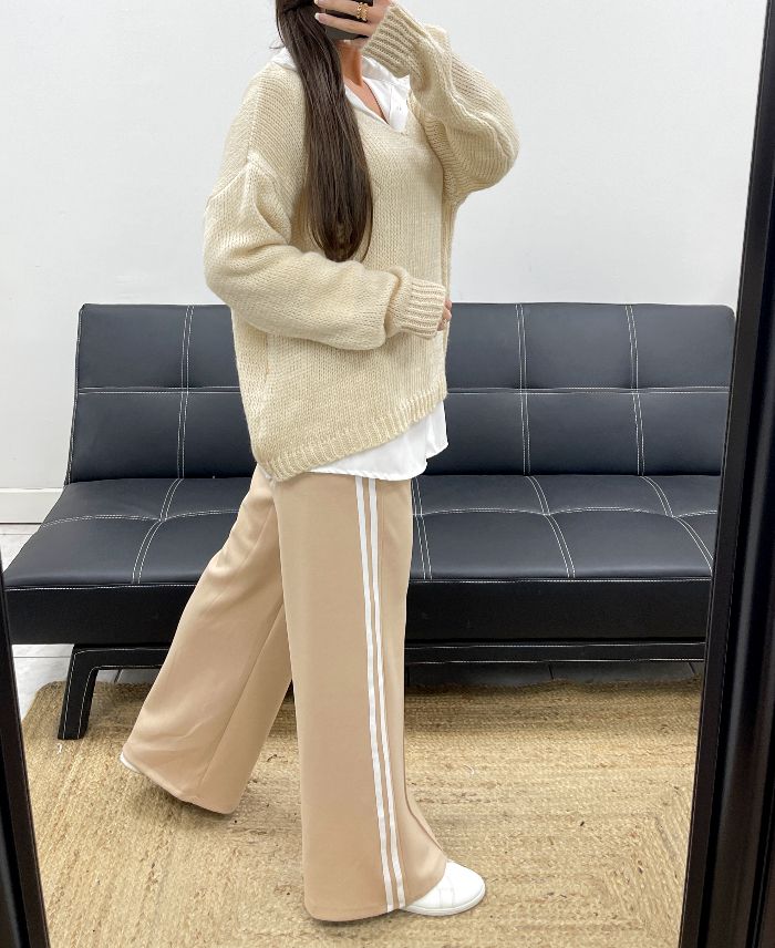 PANTALON 2 POCHES A BANDES AH250688 BEIGE