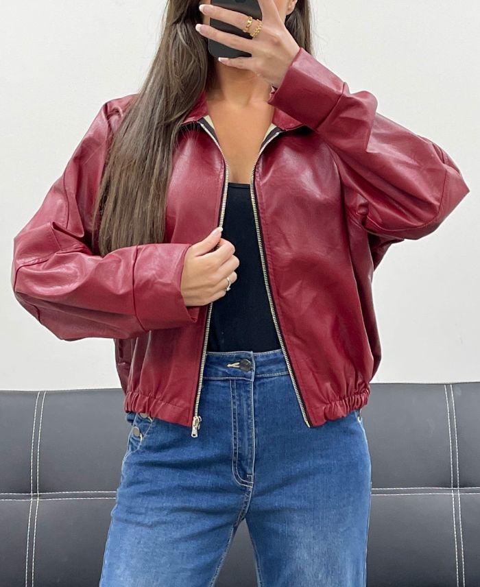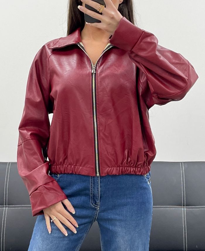 VESTE SIMILI CUIR AVEC ZIP AH250695 BURGUNDY
