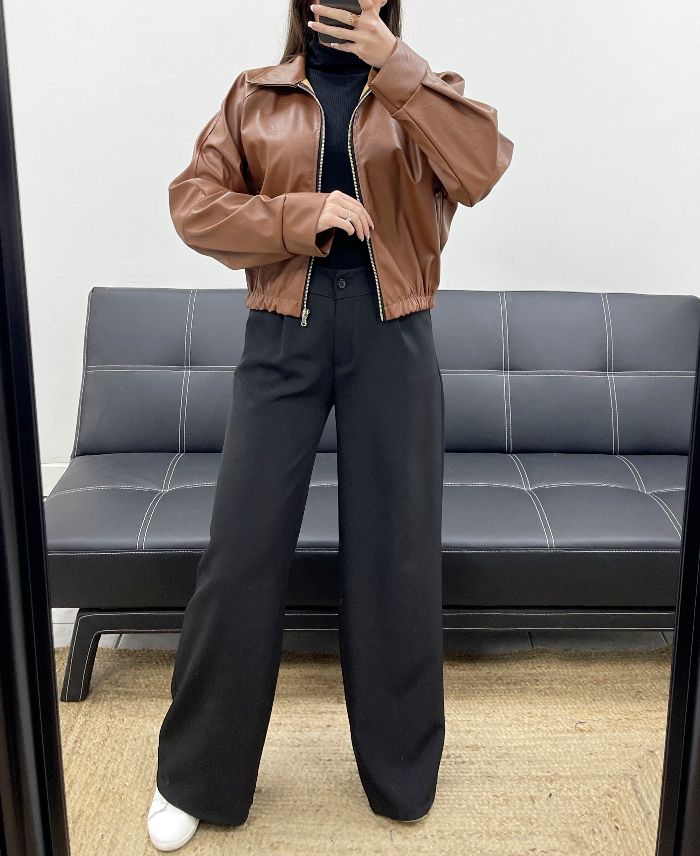 VESTE SIMILI CUIR AVEC ZIP AH250695 CHOCOLAT