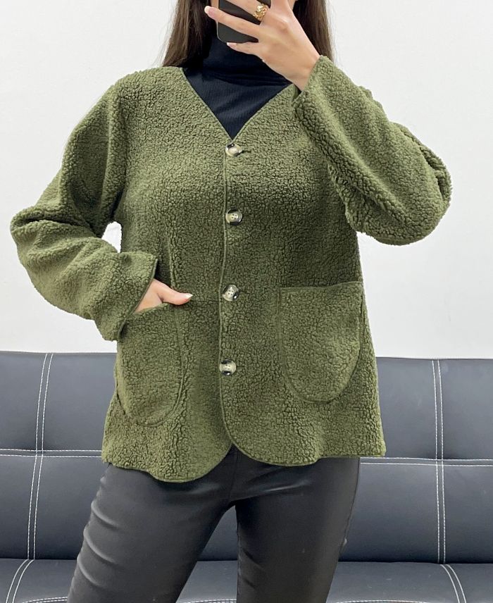 VESTE EN LAINE A BOUTONS 2 POCHES AH250713 KAKI