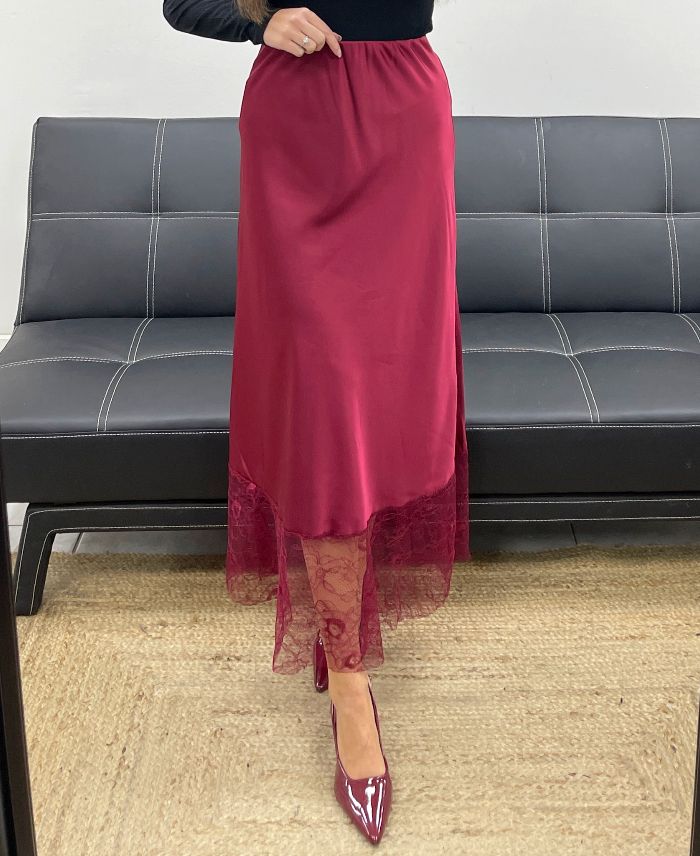 JUPE LONGUE SATIN DENTELLE AH250718 BURGUNDY