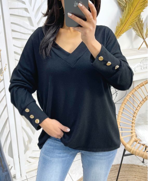PULL COL V MANCHES BOUTONS PE379 NOIR