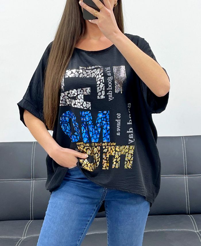 TOP FLOCAGE AMPLE PE1368 NOIR