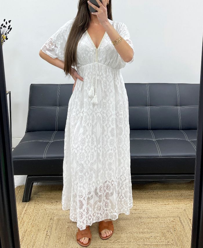 "COLLECTION BOHEME" ROBE LONGUE DENTELLE PE2279 BLANC