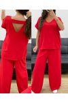 ENSEMBLE TOP DOS OUVERT + PANTALON LARGE BIJOU PE2502 ROUGE