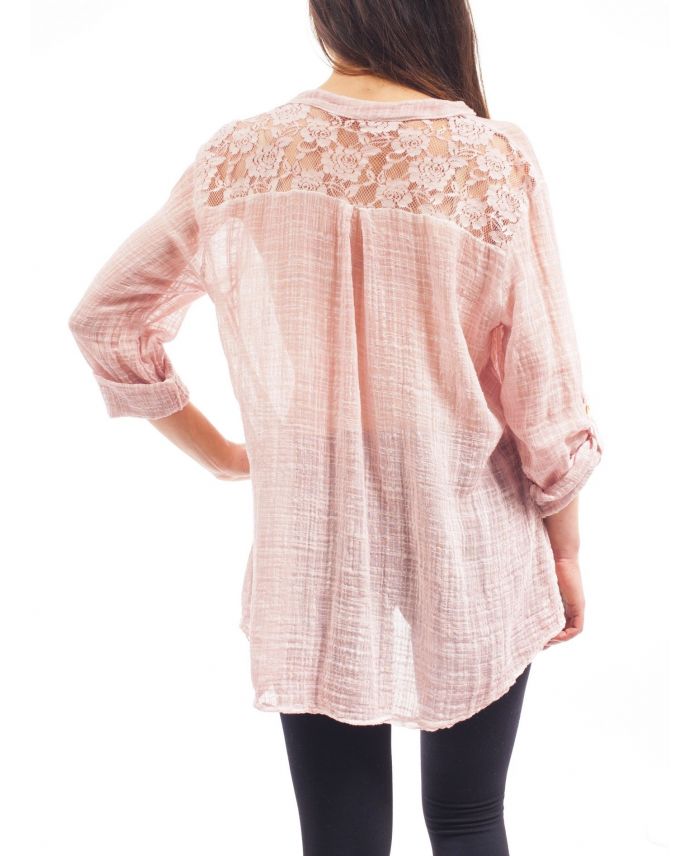 TUNIQUE EMPIECEMENT DENTELLE S9101 ROSE