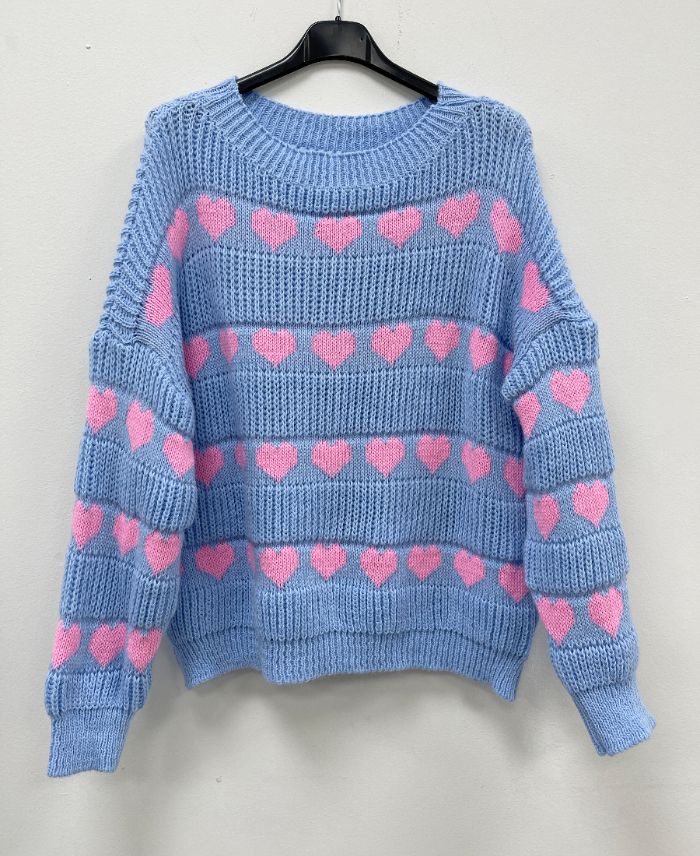 PULL MAILLE COEURS PE2163 BLEU