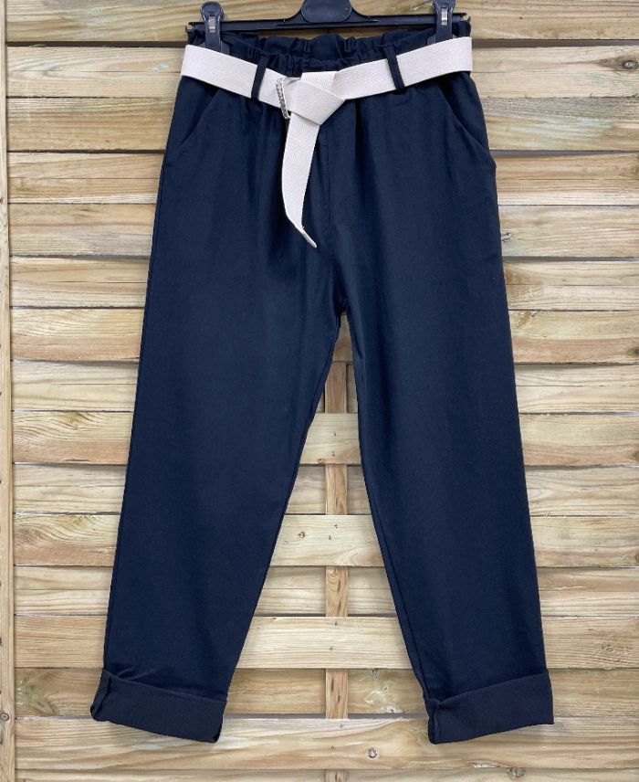 PANTALON TAILLE ELASTIQUE 2 POCHES + CEINTURE PE2401 NOIR