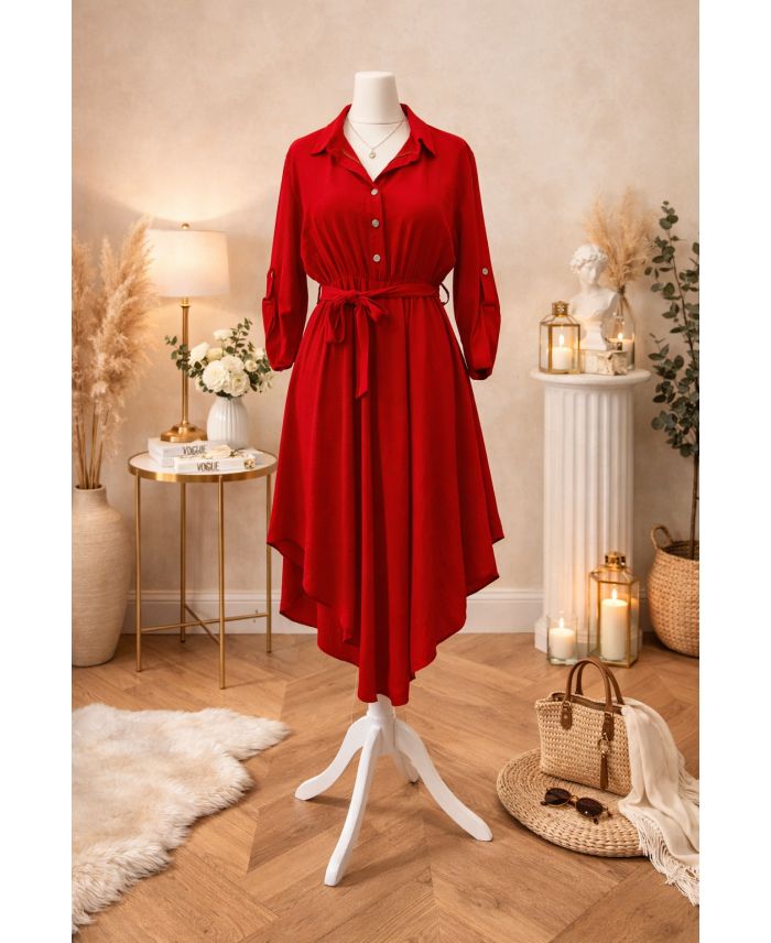 ROBE ASYMETRIQUE + CEINTURE PE2482 ROUGE