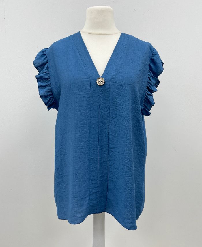 BLOUSE AMPLE A VOLANTS PE26817 BLEU JEANS