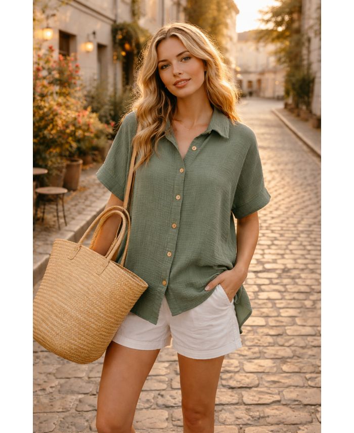 CHEMISE GAZE DE COTON PE26849 KAKI