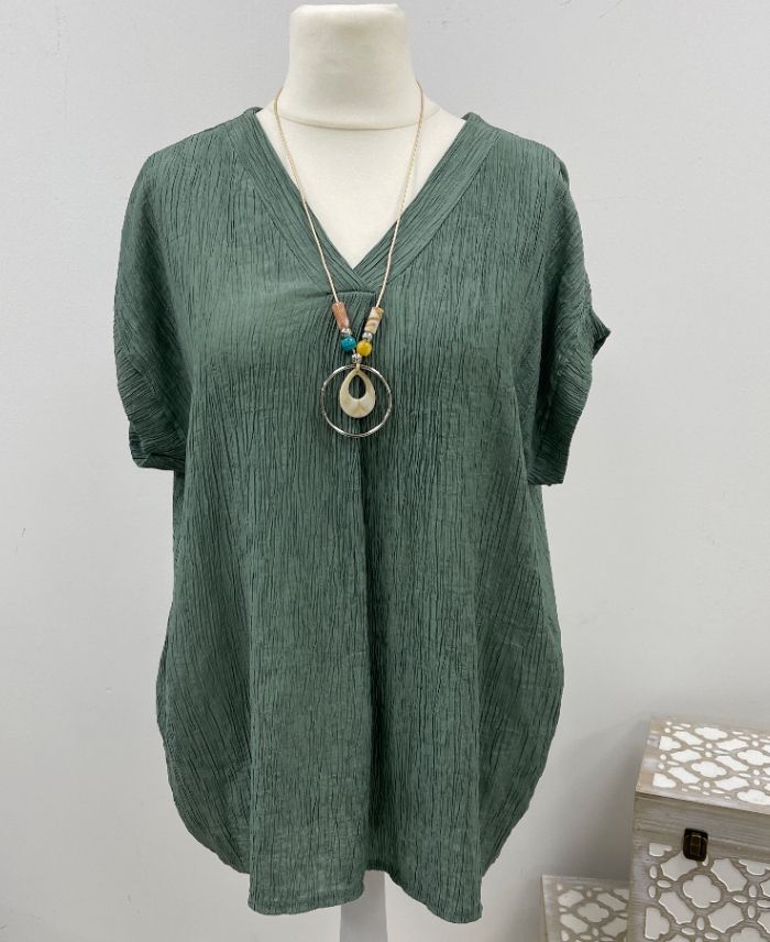 TOP FLUIDE TEXTURE AVEC COLLIER PE260568 KAKI