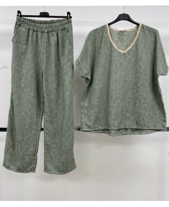 ENSEMBLE EN LIN TOP + PANTALON 2 POCHES PE260654 KAKI