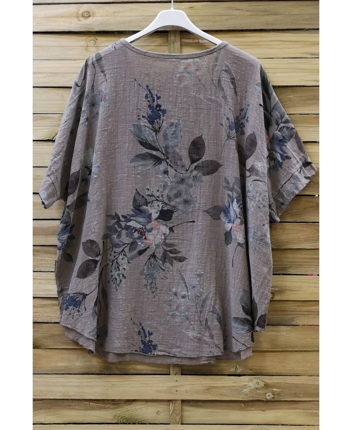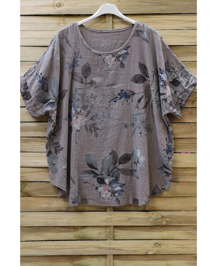 TOP IN COTONE FIORI 0677 TAUPE