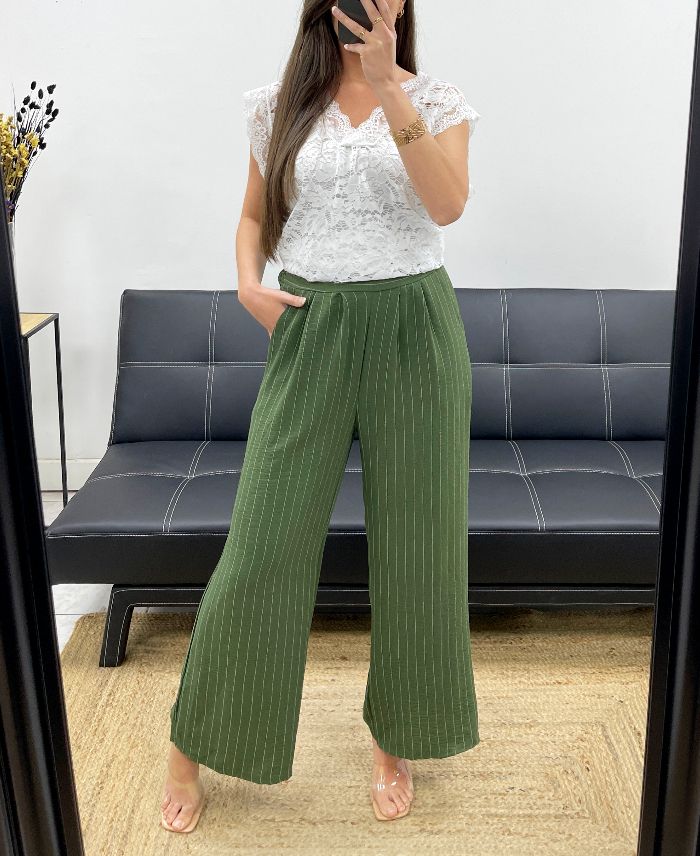 cliquez-iciPANTALONE A RIGHE GAMBA LARGA PE1289 KHAKI