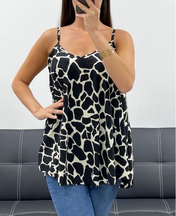 PE2535 TOP SVASATO MACULATO CON STAMPA SPALLINE