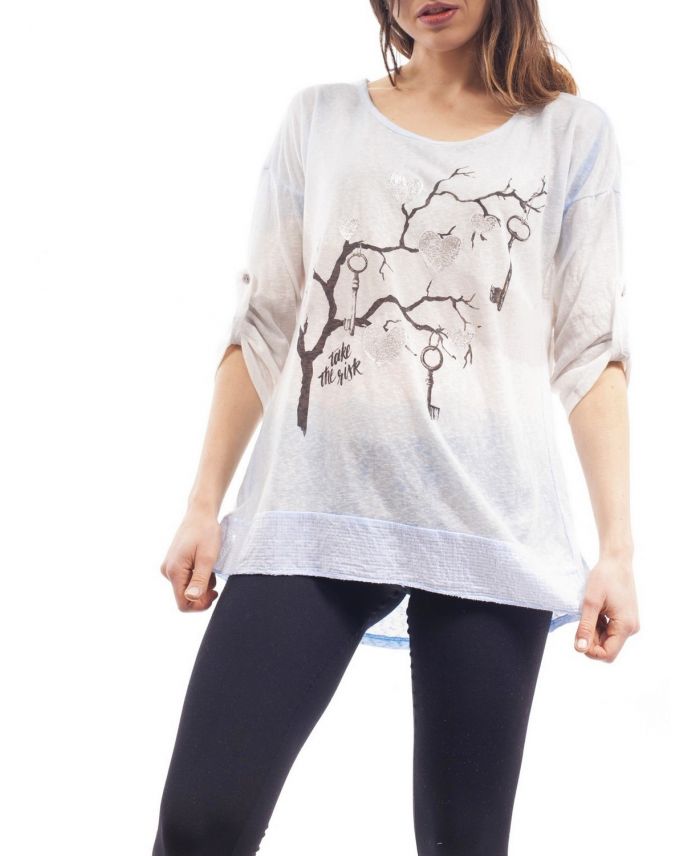 T-SHIRT ALBERO GLITTER S9096 BLU