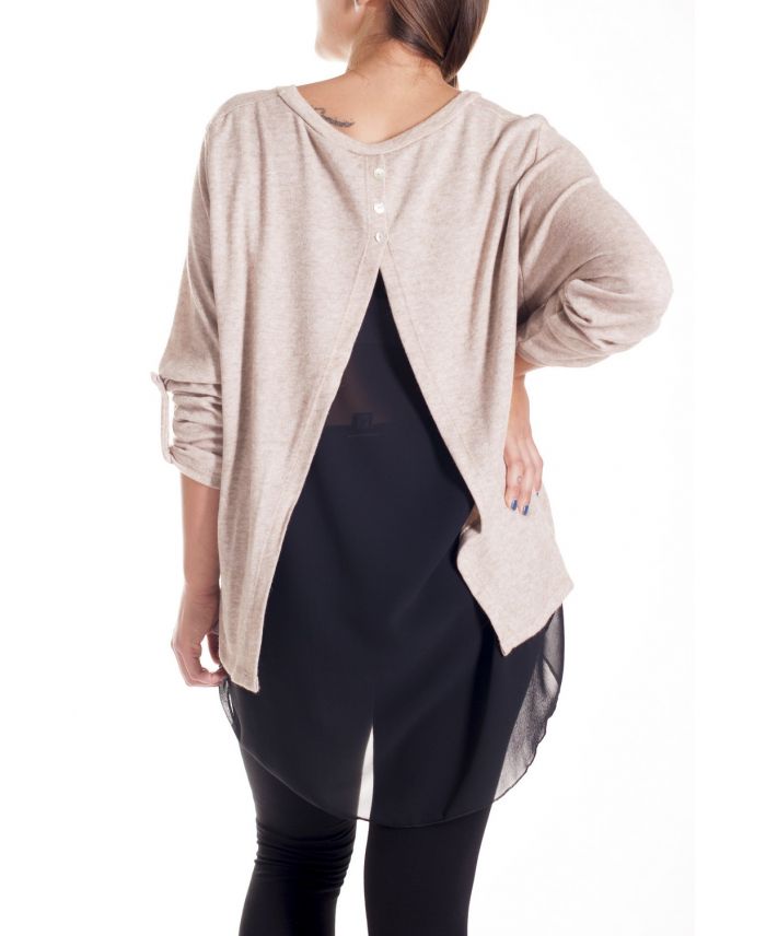 DI GRANDI DIMENSIONI MAGLIONE TUNICA INDIETRO VELA 4192 BEIGE