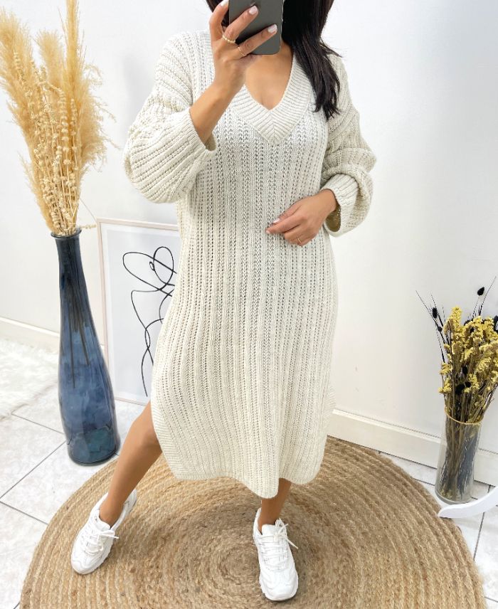 cliquez-iciABITO IN MAGLIA SCOLLO A V SPACCO AW518 BEIGE