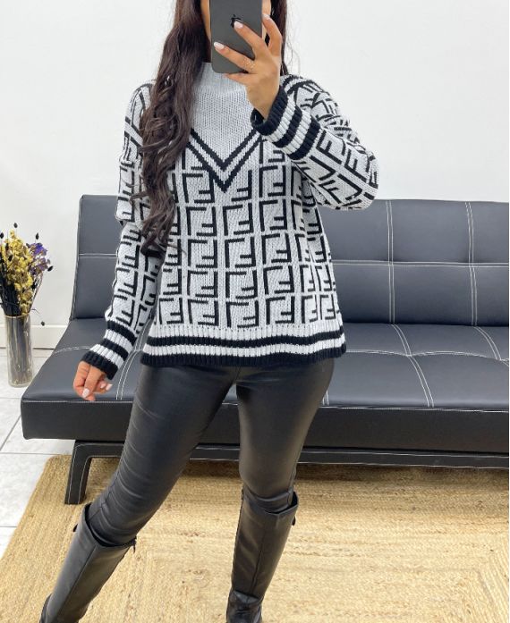 MAGLIA RIALZATA CON MOTIVI GEOMETRICI AH935 GRIGIO