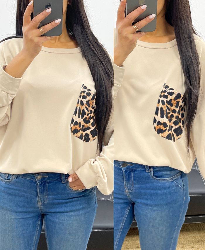 FELPA OVERSIZE LEOPARDATA CON TASCHE AH250871 BEIGE
