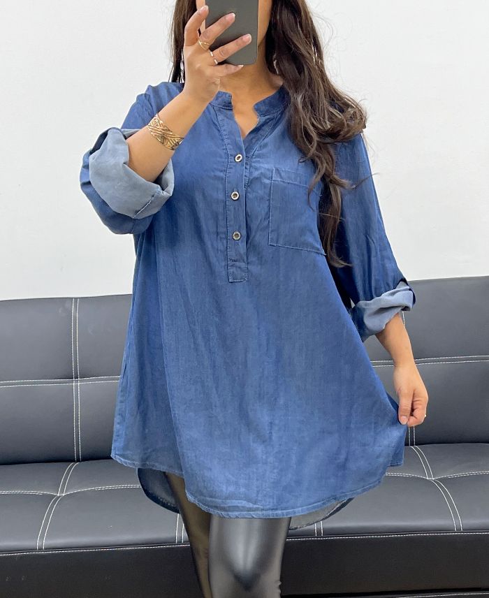 BLUSA OVERSIZE TENCEL PE0841 BLU SCURO