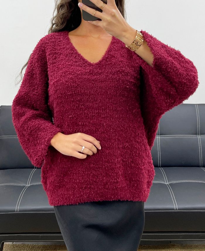 PULLOVER TEDDY LAVORATO A MAGLIA AH2555013 BORGOGNA