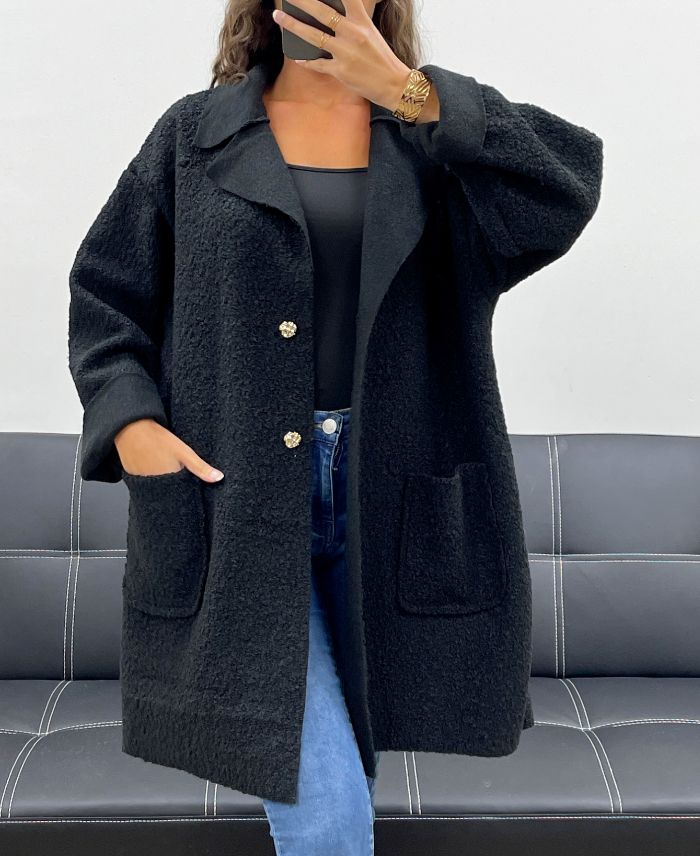 GIACCA AMPIA IN LANA CON 2 TASCHE AH2555024 NERA