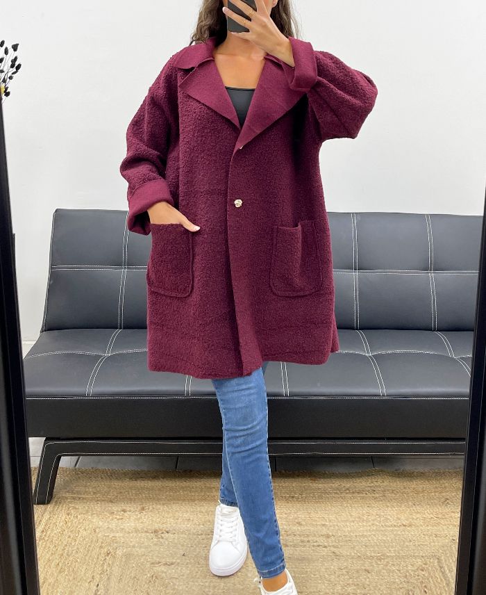 GIACCA AMPIA IN LANA CON 2 TASCHE AH2555024 BORDEAUX