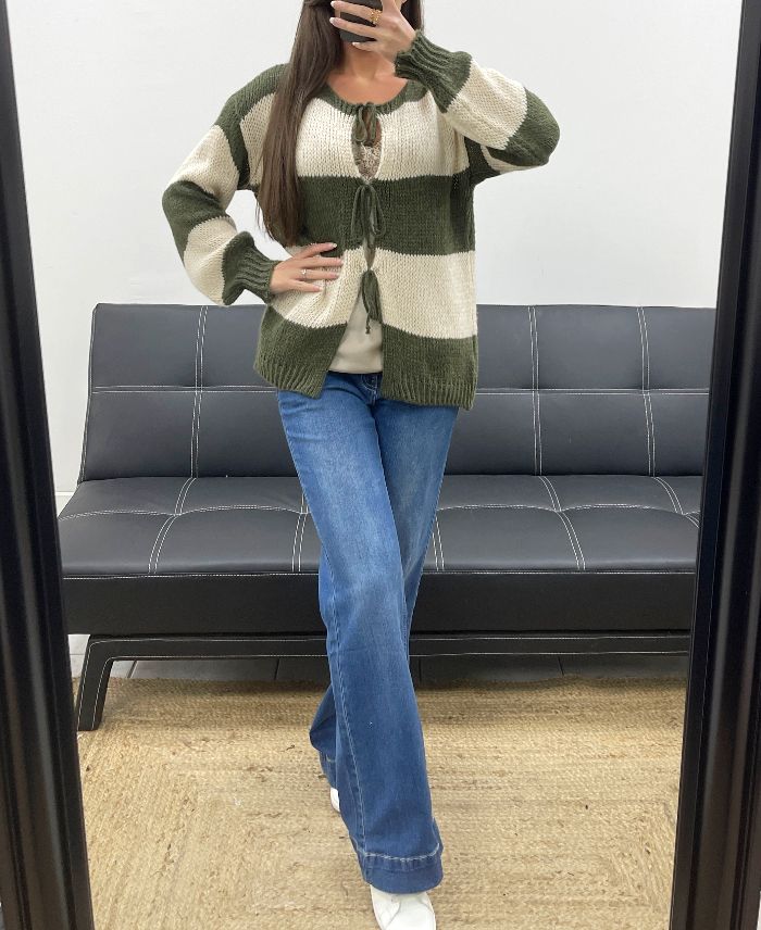 MAGLIA CARDIGAN A RIGHE MORBIDE AH255061 KAKI
