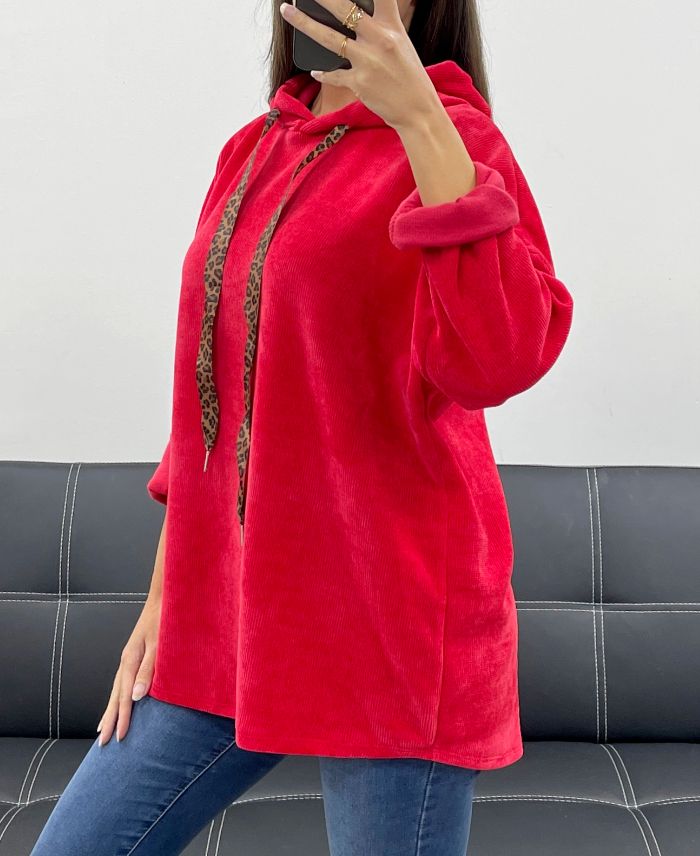 FELPA LEOPARD VELVET CON CAPPUCCIO AH255197 ROSSO